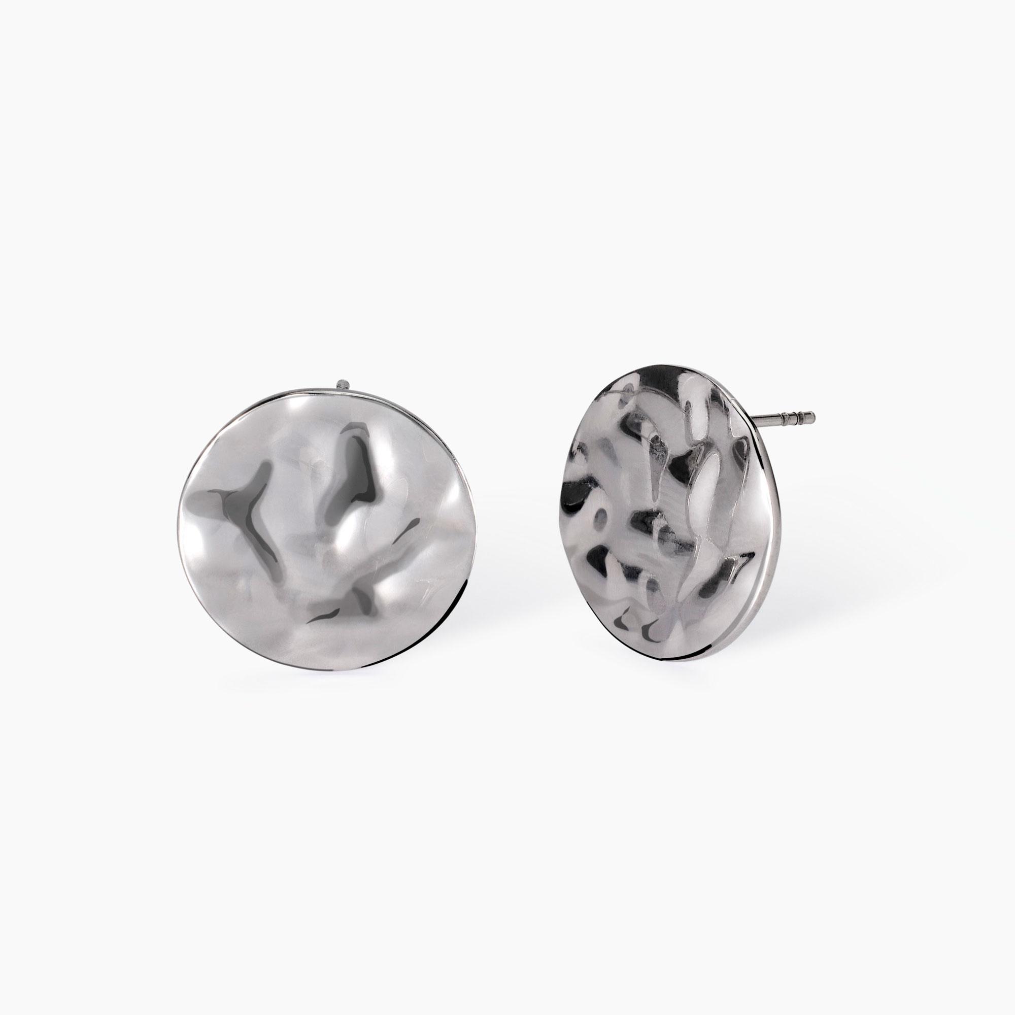 Orecchini a lobo tondi effetto martellato. • Diametro orecchino: 20 mm • Materiale: Acciaio 316L