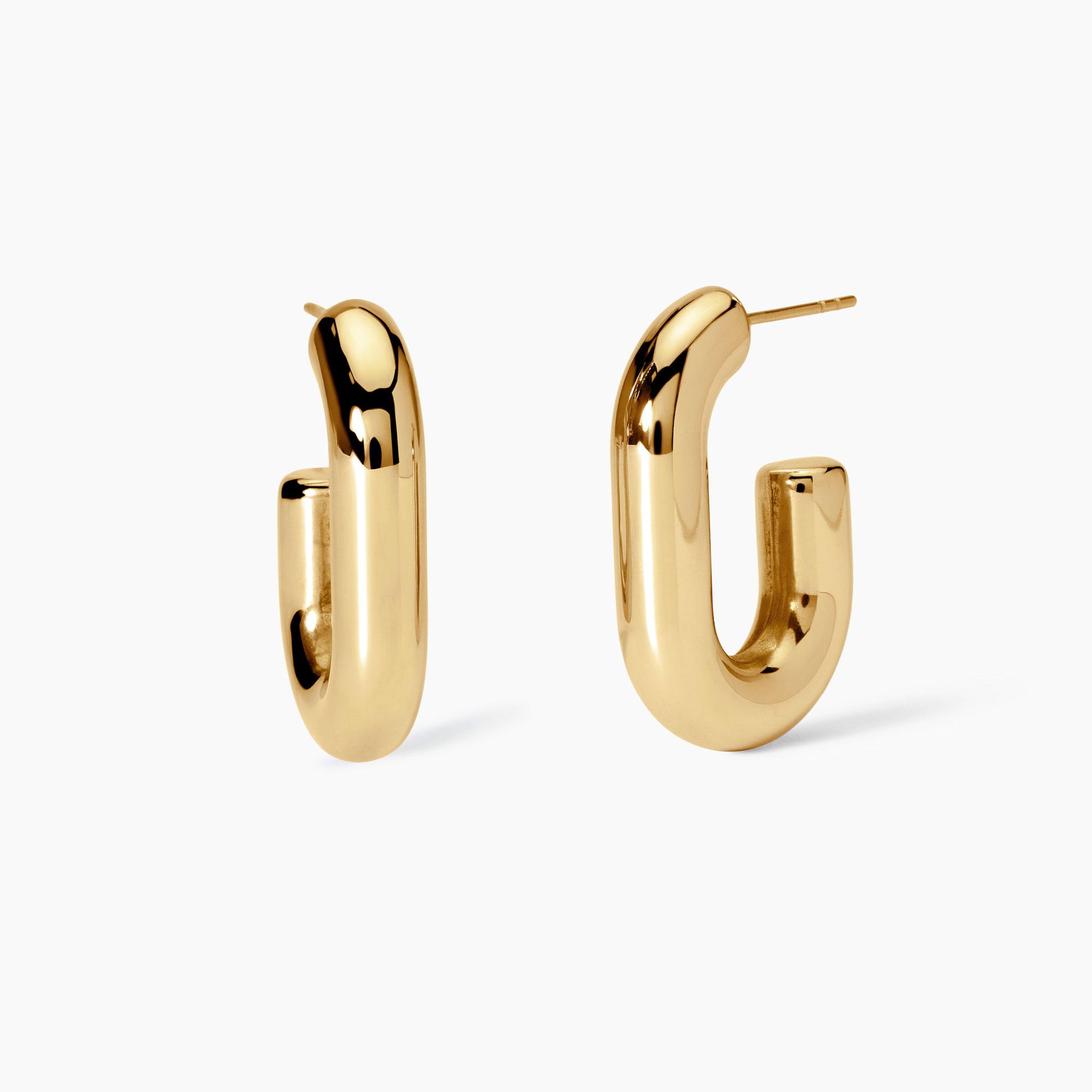 Orecchini rettangolari in acciaio con bordi stondati. • Dimensione orecchino 29 x 20 • Materiale: Acciaio 316L, PVD giallo