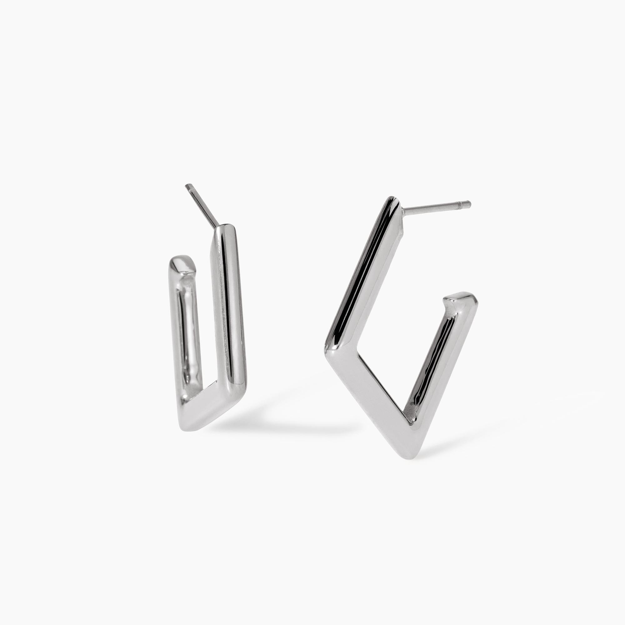 Orecchini a rombo in acciaio. • Dimensione orecchino: 23×29 mm • Materiale: Acciaio 316L