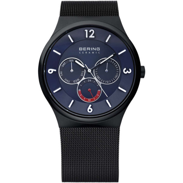 Orologio Multifunzione Da Uomo Di Bering Della Collezione Ceramic. Orologio Con Cassa Della Dimensione Di 40 Mm, Di Colore Nero Spazzolato E Realizzata In Acciaio Inox. Modello Con Cinturino Di Colore Nero, Realizzato In Milano, Con Chiusura A Scatto. Questo Orologio Ha Lunetta Di Colore Nero In Ceramica, E Quadrante Blu, Con Vetro Zaffiro. Modello Con Movimento Al Quarzo E Resistenza All’Acqua Di 5 Atm. La Referenza È 33440-227