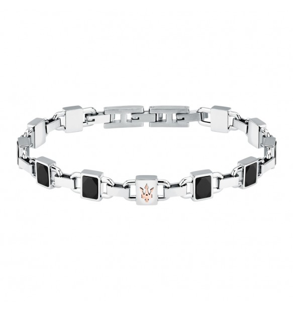 Braccialetto da uomo realizzato in acciaio anallergico. Centrale con logo placcato oro rosa e inserti in ceramica nera.