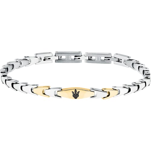 BRACCIALE MASERATI ICONIC – JM225AVD84 – Genere: Uomo, Misura: 18|3.5, Colore: Silver, Dorato, Bluespirit experience: Fashion, Materiale: Acciaio, Peso: 19,780 gr, Certificato di autenticità: Sì, Confezione: Originale Maserati