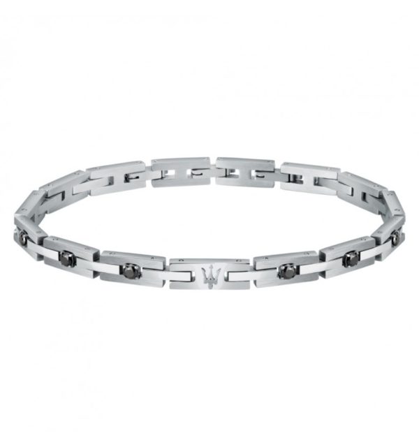 Braccialetto da uomo realizzato in acciaio anallergico con finitura lucida e inserti con zirconi neri.