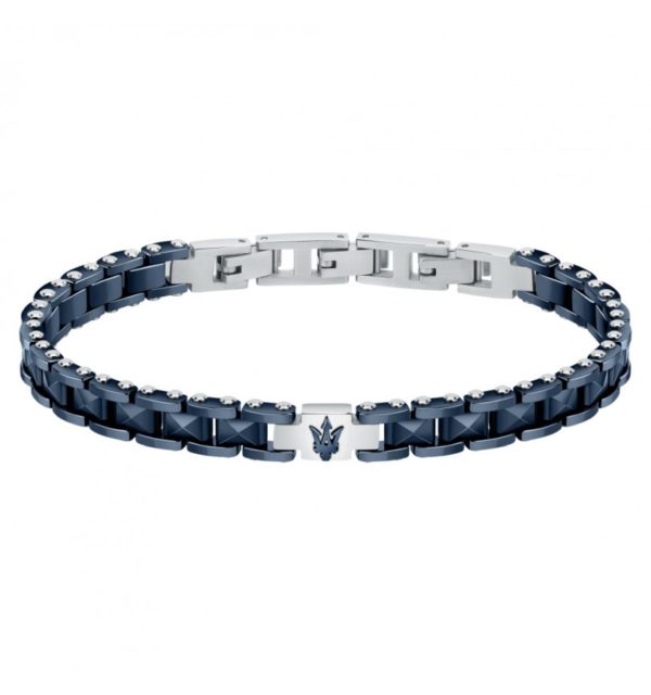 Braccialetto da uomo realizzato in acciaio anallergico con trattamento ip blu e inserti in ceramica blu.