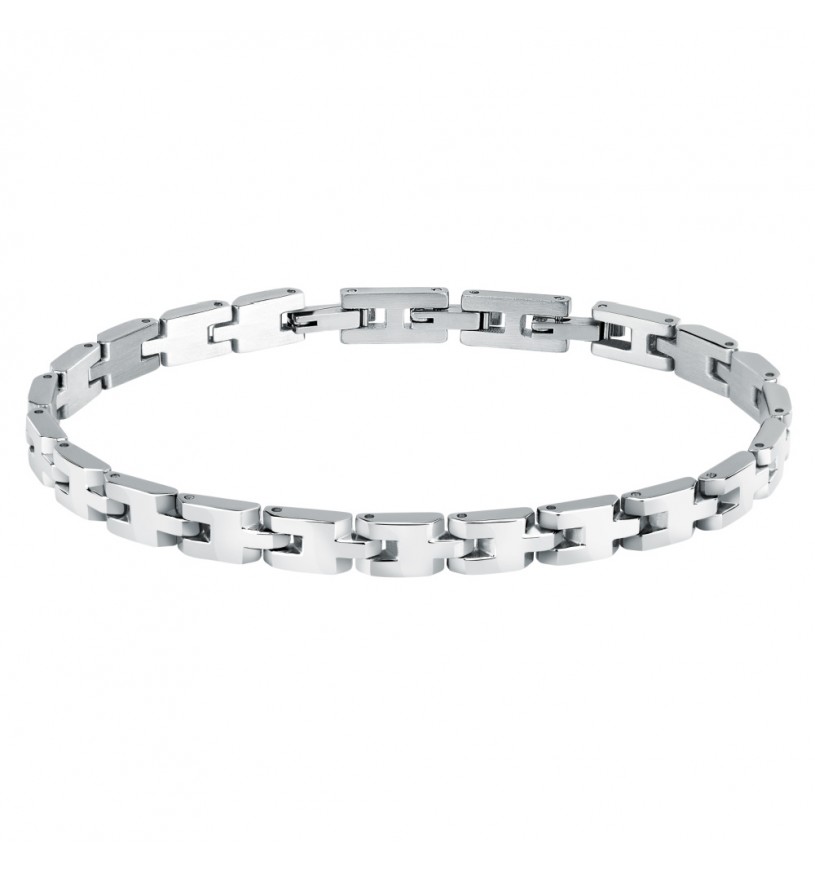Braccialetto da uomo realizzato in acciaio anallergico rodiato con finitura lucida.