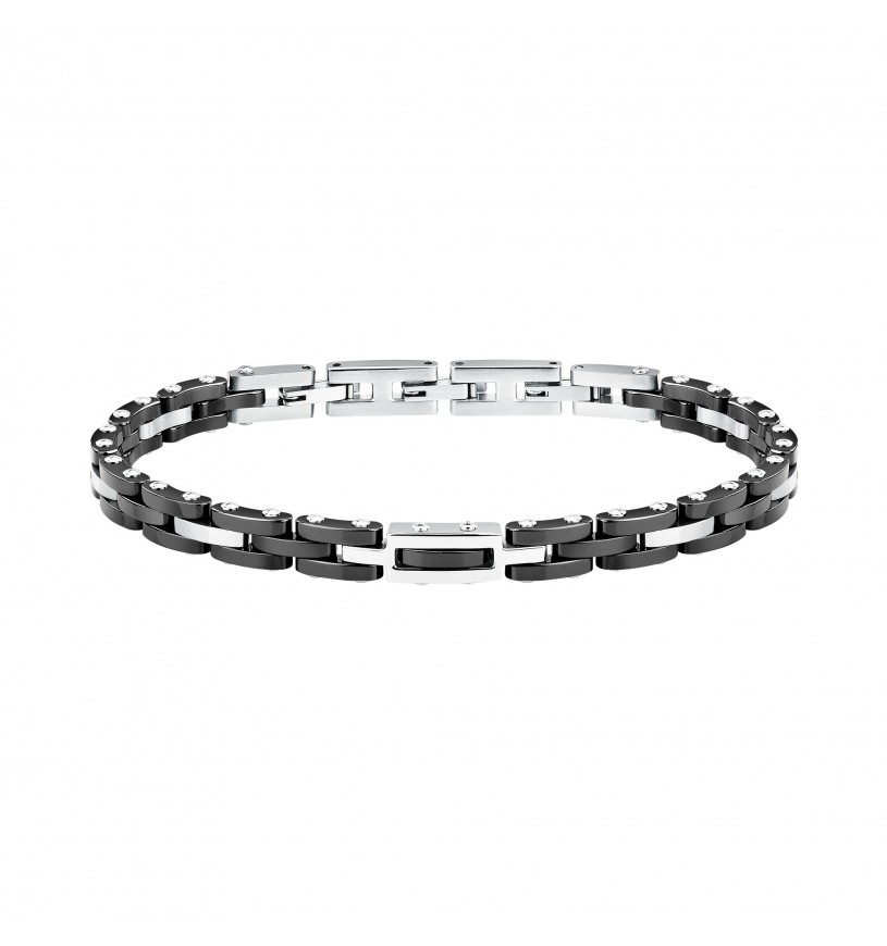 Braccialetto da uomo realizzato in acciaio anallergico rodiato e ceramica nera.