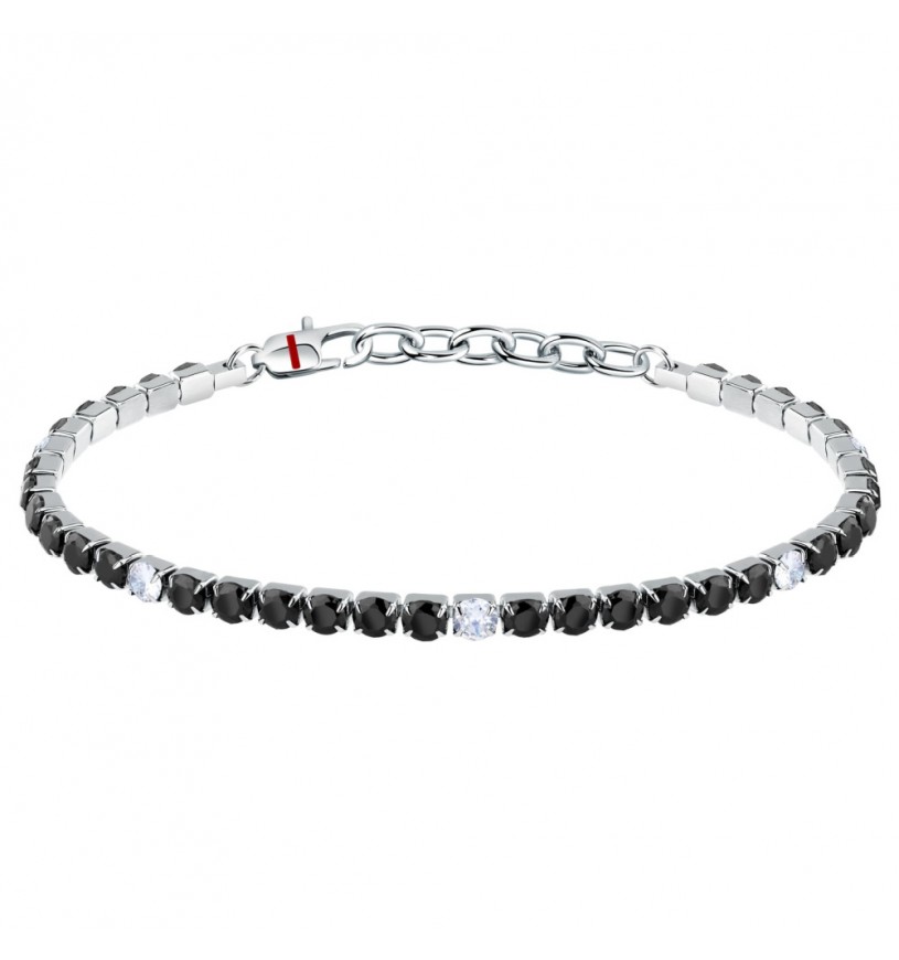 Tennis di cristalli neri con intervalli bianchi realizzato interamente in acciaio anallergico.