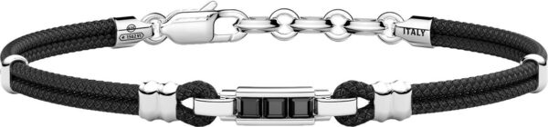 Bracciale da uomo in Argento 925, Kevlar nero e Spinelli neri Chiusura con moschettone e anelli di regolazione finali Collezione: Insignia 925