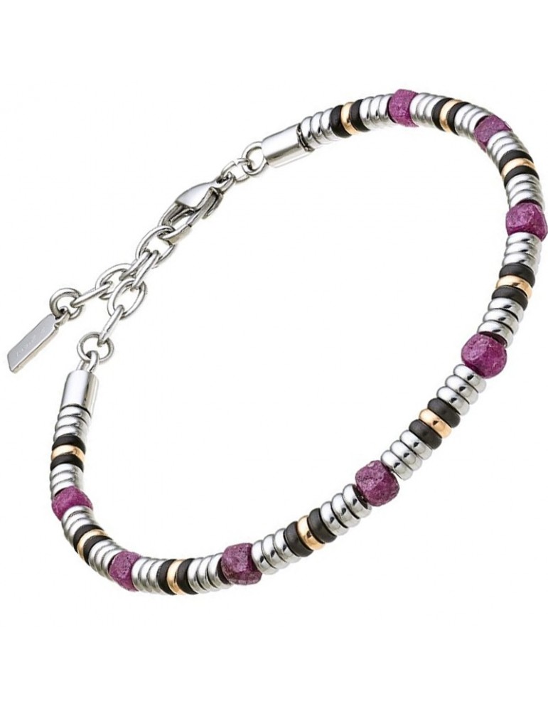 Bracciale morbido con dischetti in acciaio 316L ipoallergenico lucido e laminato oro rosa, cilindretti neri ed agate rosse sfaccettate. Misura regolabile da cm.20 a cm.23. Uno stile esclusivo in cui identificarsi, un carattere particolare in cui riconoscersi. Design curato in ogni dettaglio, per trasmettere la propria personalità. Per affermare la propria identità.