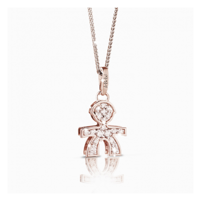 Ciondolo maschietto oro in pavè di brillanti micro-setting con catena in oro rosa.
