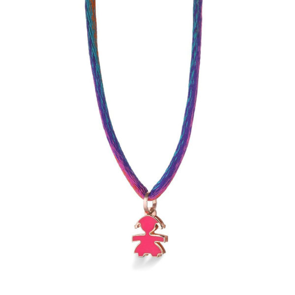 Pendente Le Bebè collezione “MINI” con femminuccia in oro rosa 9 kt e smalto color fuxia.