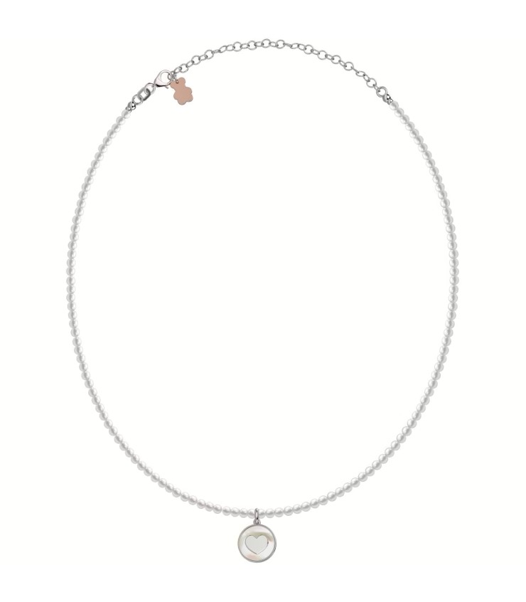 La collana è realizzata in Argento Sterling 925, con Perline e Pendente con Madreperla e Cuore.