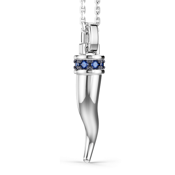 Collana da uomo in Argento 925 e pendente cornetto con Spinelli blu