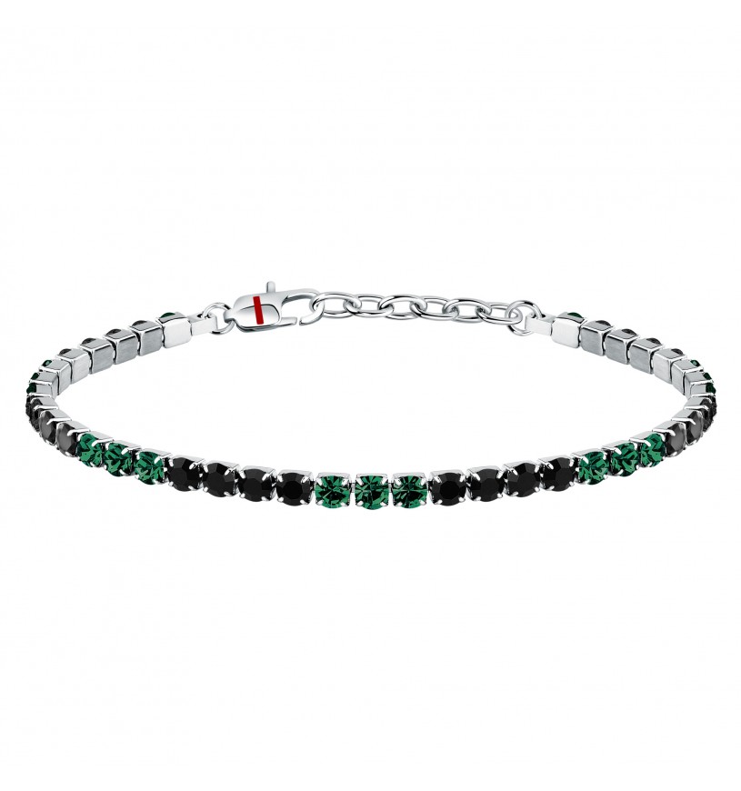 Tennis di cristalli neri e verdi realizzato interamente in acciaio anallergico.