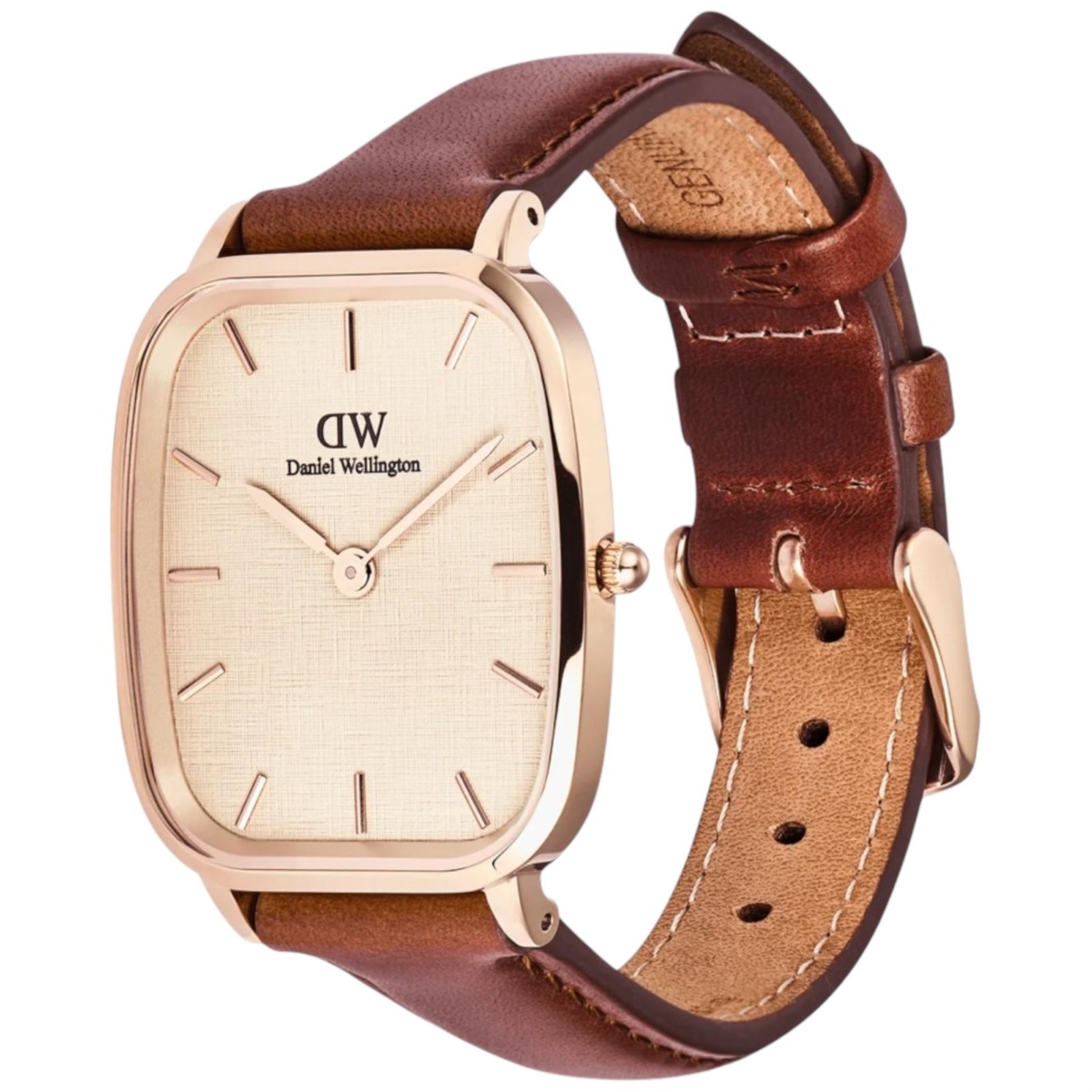 Orologio uomo Daniel Wellington della collezione Marlon realizzato con cassa in acciaio color oro rosa con un diametro di 32 x 36,3 mm e uno spessore di 6.2 mm.