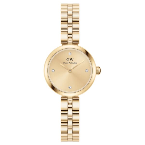 Orologio donna Daniel Wellington della collezione Elan Lumine realizzato con cassa in acciaio color oro giallo con un diametro di 22 x 28.5 mm e uno spessore di 7.3 mm.