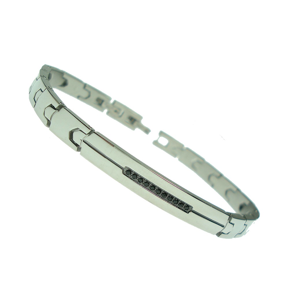 Bracciale uomo realizzato in Acciaio 316 di lunghezza 21 cm con Targa centrale con Zirconi neri.
