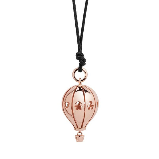 Ciondolo “Le Mongolfiere” in argento placcato oro rosa, su cordino ecologico nero.