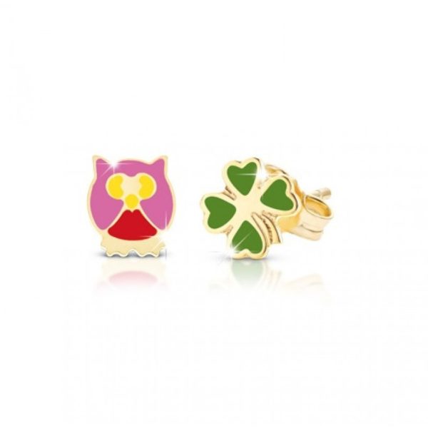 QUADRIFOGLIO E CIVETTA IN SMALTO COLORATO
