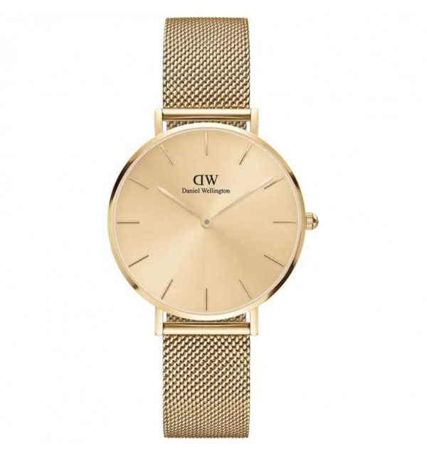 Quadrante color oro con indici a bastoni.