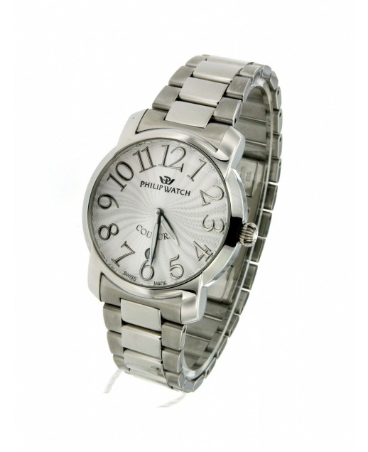 Genere : Donna, Materiale e finitura cassa: Acciaio, Misura cassa: 45,5x41mm, Vetro: Zaffiro, Materiale cinturino: Acciaio, Colore cinturino: Acciaio, Chiusura: Fibbia ardiglione, Movimento: Quarzo, Water resistant: 5 atm, Garanzia: Ufficiale 2 anni Philip Watch, Confezione: Originale Philip Watch, Philip Watch experience: Lady