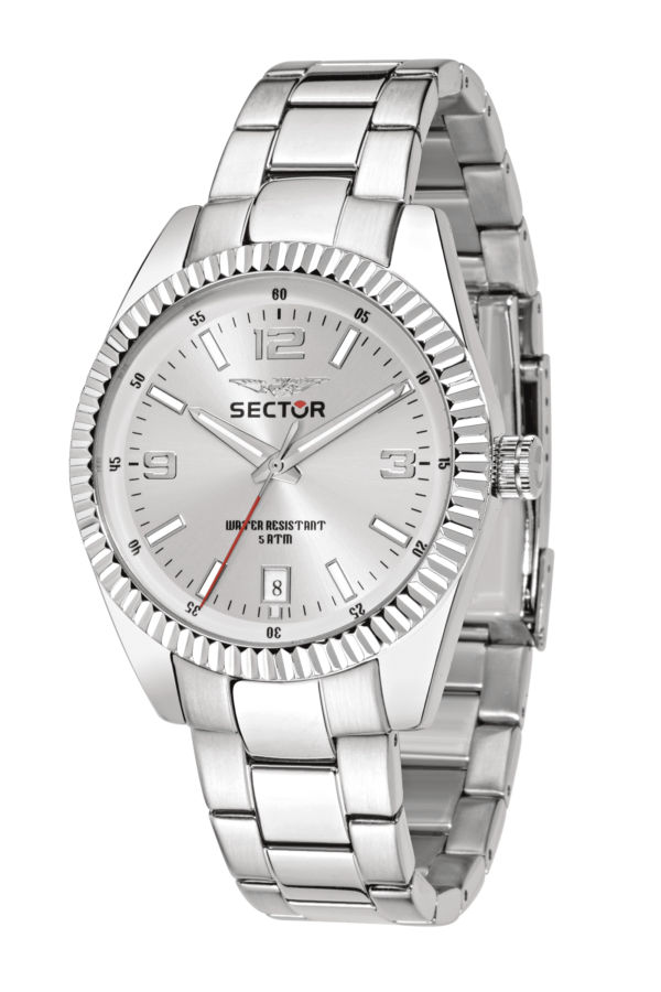 Orologio con cassa in acciaio dal diametro di 41 mm lucida e satinata, quadrante color blu con datario. Cinturino in acciaio con chiusura Deployante. Wr 5 atm.