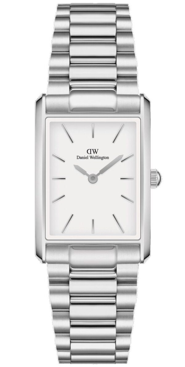 Grazie al loro profilo geometrico slanciato e due taglie da scegliere, gli orologi della collezione Bound esprimono una perfetta simmetria da indossare al polso. Questo orologio di color argento vanta una scocca curvata di forma rettangolare che si abbina alla larghezza del suo cinturino a 3 maglie, creando così un quadrante perfettamente integrato.