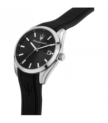 Cinturino in silicone nero; chiusura con fibbia ardiglione.