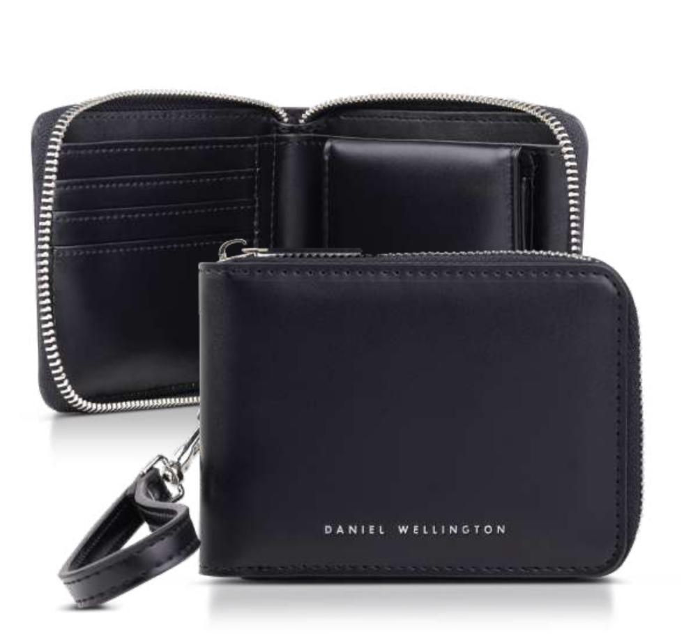 Questo portafoglio nero liscio si distingue per i dettagli cool e contemporaneo, ed è decorato con il logo dell’azienda in argento bianco.