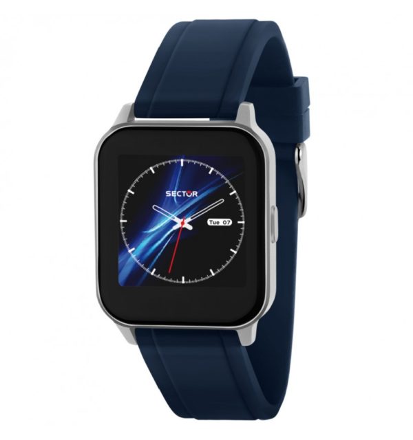 Cinturino in silicone blu; chiusura con fibbia ardiglione.